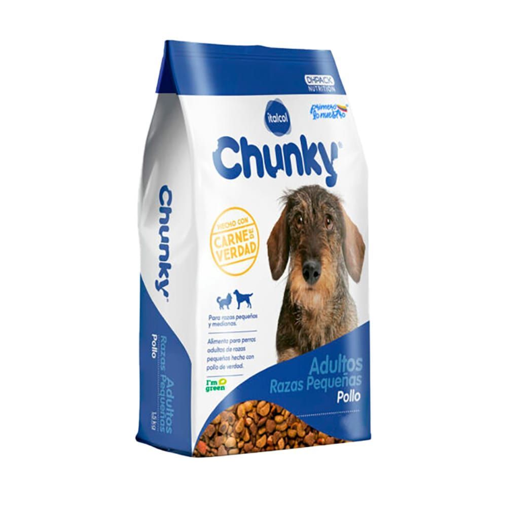 El concentrado para perros adultos de razas pequeñas Chunky es un alimento ideal para contribuir a una alimentación completa y balanceada que proporcionará los nutrientes adecuados para mantenerlos sanos y activos. Ya que las necesidades nutricionales de los perros de razas pequeñas tienden a ser diferentes, pues por lo general sus estómagos son más sensibles y pequeños. La fórmula de este concentrado cuenta con ácidos grasos, vitaminas, minerales y DH pack que favorecerán su salud en general. Además sus palatables croquetas son más pequeñas con el fin de que sean fáciles de masticar y de disminuir la acumulación de sarro en los dientes.